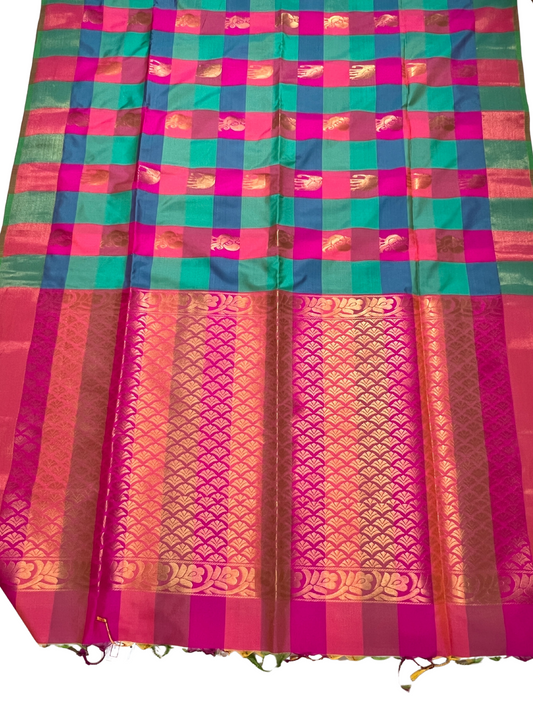 Palum Pazhamum checks with Pink Pallu - Semi Kanchipuram Saree