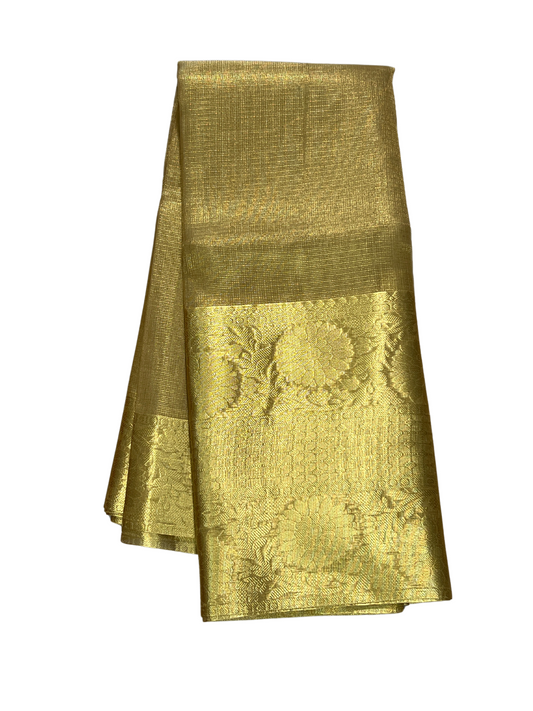 Palum Pazhamum checks in Yellow with Pink Pallu - Semi Kanchipuram Saree
