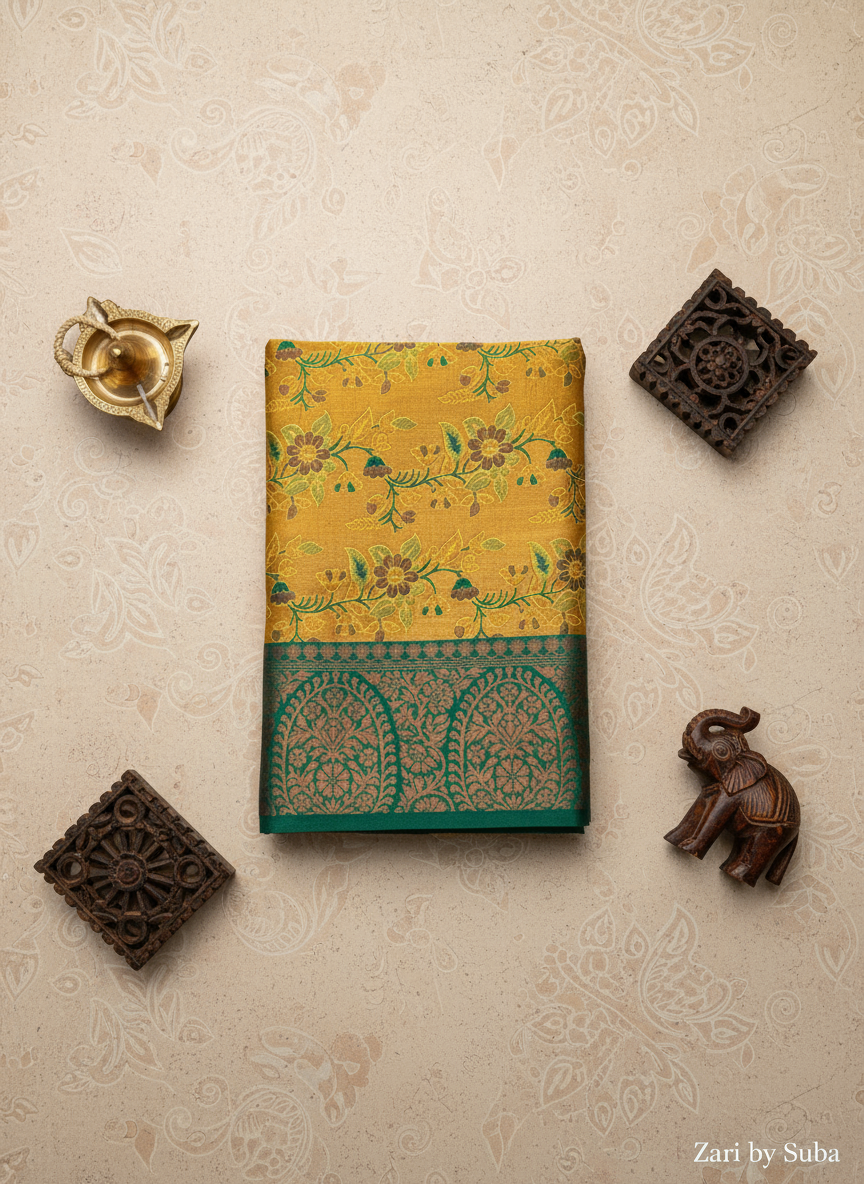 Yellow and Green - Floral Saree